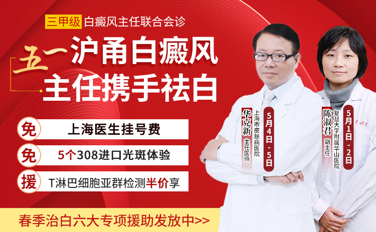 此次,五一小长假期间,陈淑君医生携手华克新医生将为不同年龄、不同类型、不同时期的白癜风患者,提供更全面、更立体的诊疗思路和祛白方案。